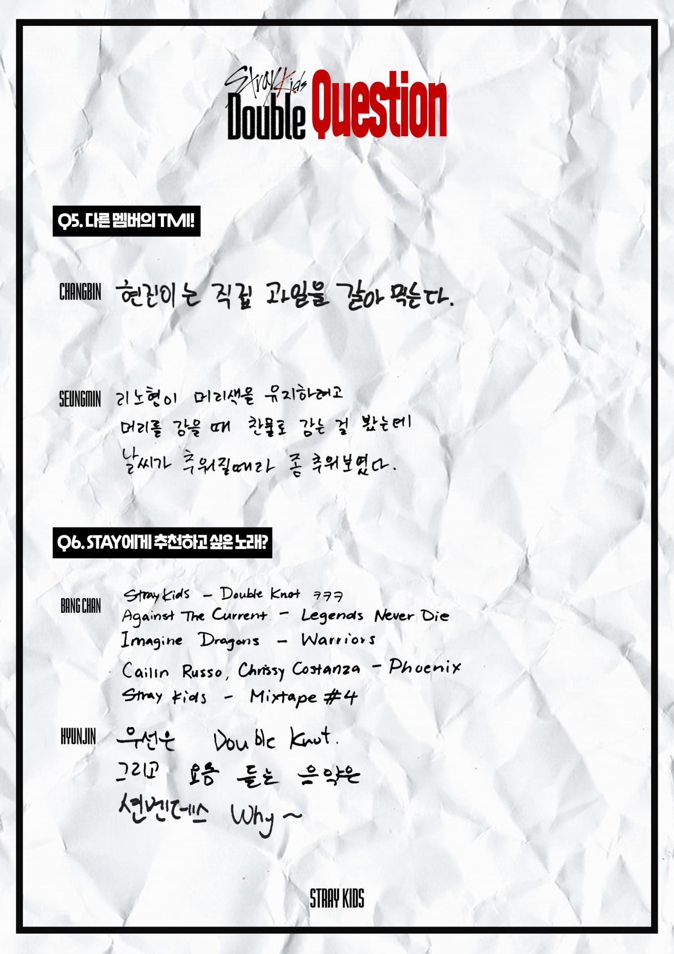[ HYUNJIN ]: Primero, Double Knot. Y he estado escuchando Why de Shawn Mendes~